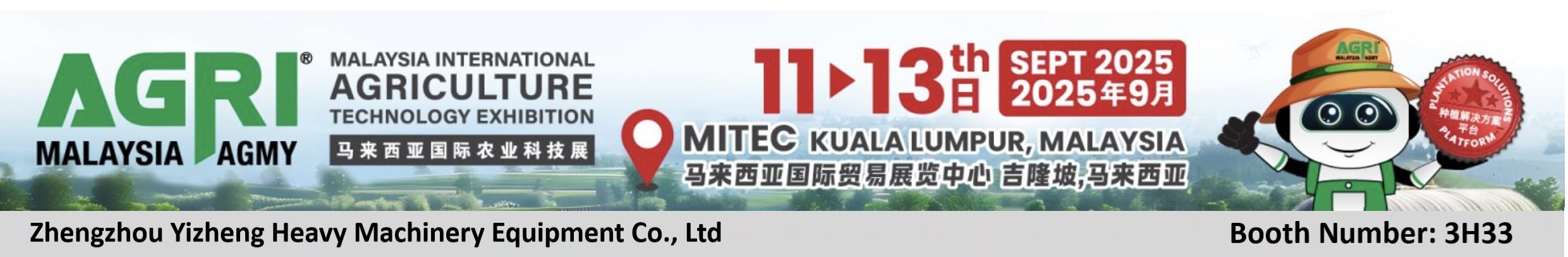 2025年9月11日至13日,鄭州一正重工機械有限公司盛大參加在馬來西亞國際貿易展覽中心舉辦的馬來西亞國際農業科技展覽會。